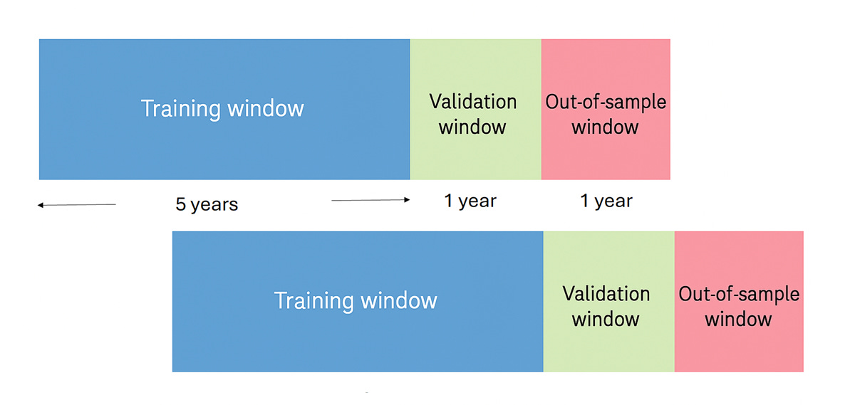 Now back to the portfolio optimization example. The paper trains 5 separate “agents” in parallel over a 5 year training window. To paraphrase this: we run 5 independent simulations of 5 year training window and compute 5 independent policies. We then pick the agent (i.e. policy) that performed best in the next 1 year validation window to be used as the seed policy for the next training window (which is the old window rolled forward by one year). For the 1-year out-of-sample period that immediately follows the validation window, we create 5 portfolios due to the 5 independent policies and obtain their average returns and compute other performance metrics on these returns.